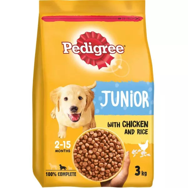 Pedigree dry puppy/junior food recipes are made with natural ingredients, vitamins and minerals to be 100% complete and balanced.