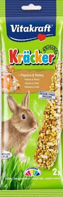 A Vitakraft Kracker Rabbit Popcorn-Honey Stick is a tasty mix of popped cereals that have been triple baked onto a natural wooden stick which is perfect for rabbits to nibble.